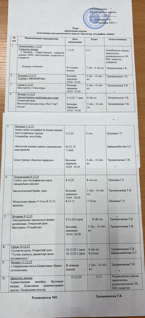 “Старый Колутон ауылының ЖОББМ”КММ 01.12-12.12.2025 аралығында химия, биология, география онкүндігінің ашылу салтанаты өтілді